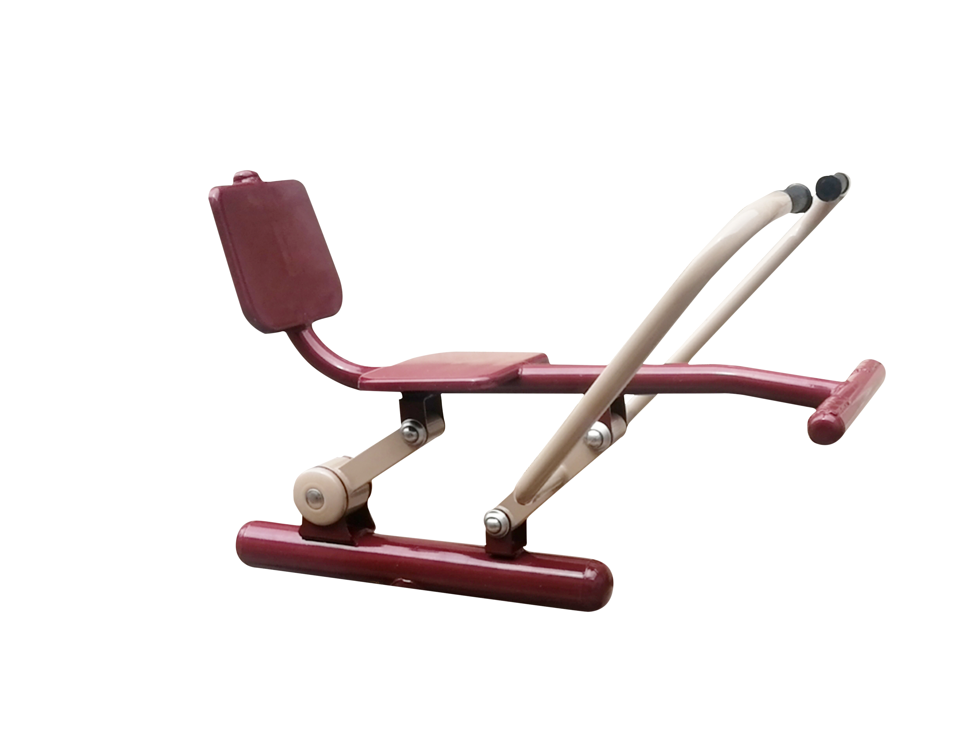 在座闆上(shàng)坐穩,雙手握把,雙臂作劃船(chuán)式伸縮運動;