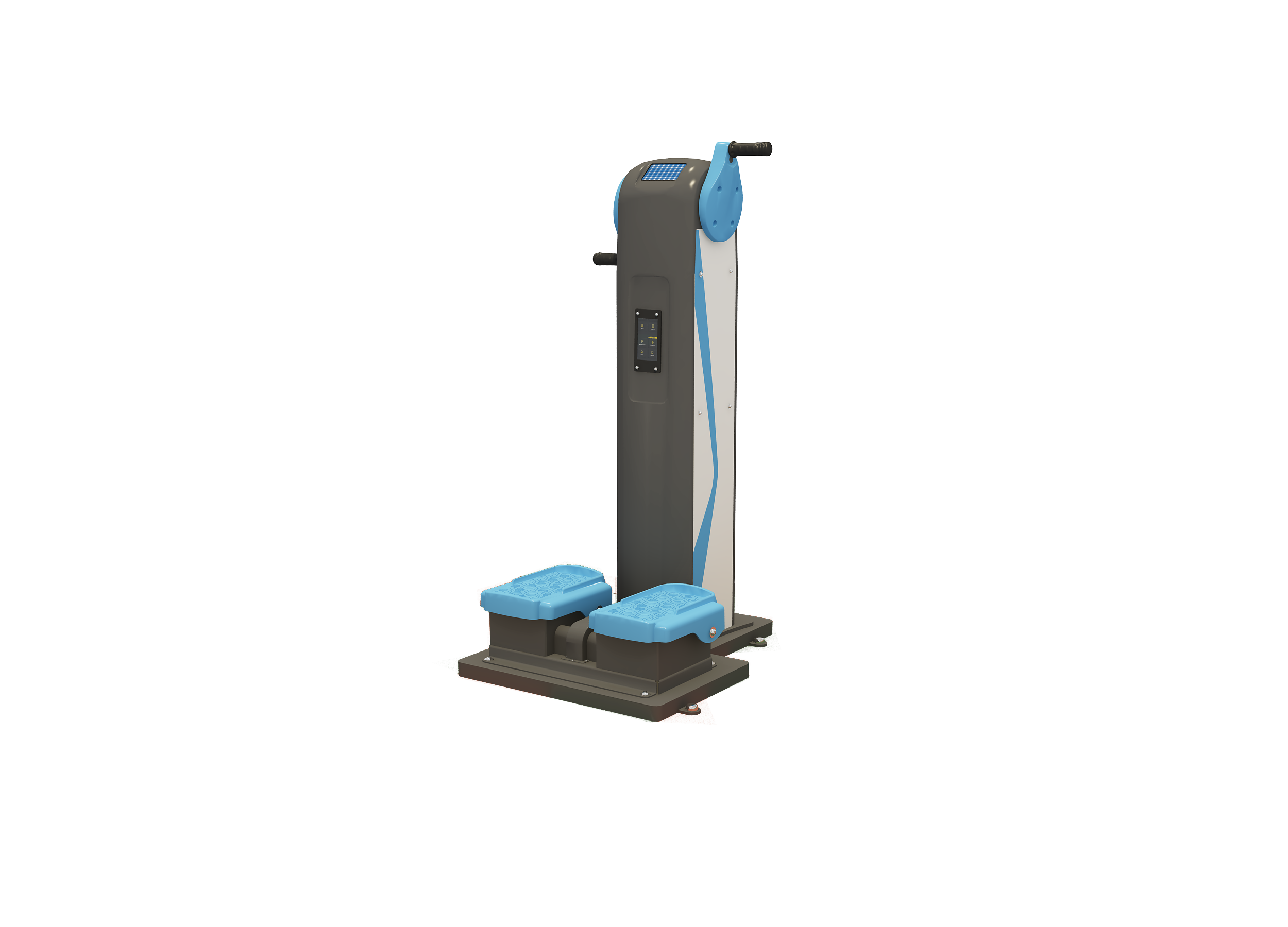 使用(yòng)方法:雙腿彎曲成馬步姿态,轉動手柄,帶動腿部運動。